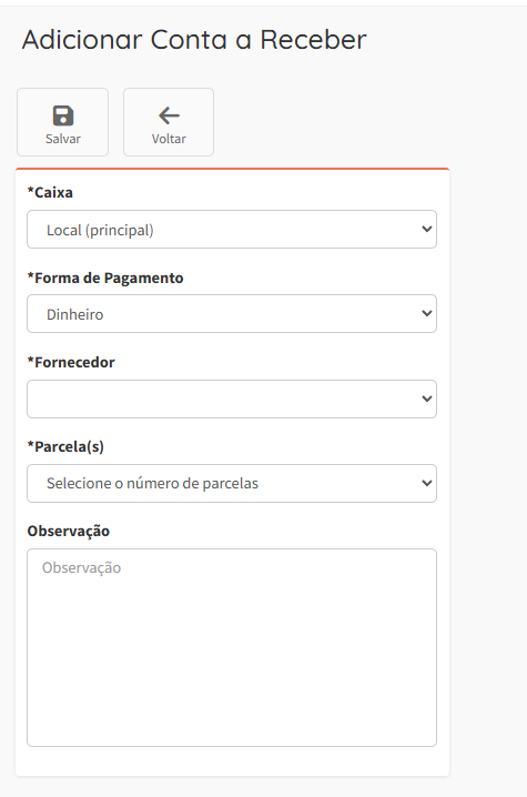 Basta preencher os dados solicitados e clicar em Salvar para registrar a movimentação.